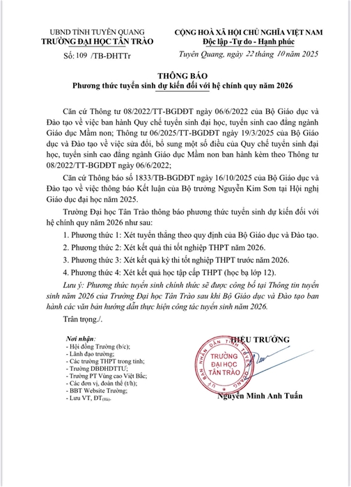 TRƯỜNG ĐẠI HỌC TÂN TRÀO - TỈNH TUYÊN QUANG