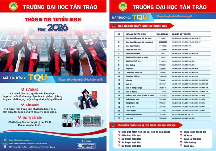 Thông tin tuyển sinh 2026 – cơ hội học tập tại Trường Đại học Tân Trào