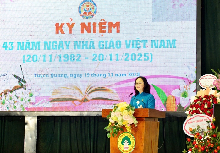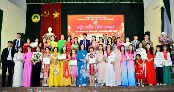 Sáng ngày 19/11/2025, Trường Phổ thông Tuyên Quang long trọng tổ chức Kỷ niệm 43 năm Ngày Nhà giáo Việt Nam tại Hội trường H, Trường Đại học Tân Trào trong không khí trang trọng và ấm áp. Buổi lễ là dịp để thầy và trò cùng ôn lại truyền thống tôn sư trọng đạo, tri ân những đóng góp thầm lặng của đội ngũ nhà giáo trong sự nghiệp trồng người. Đây cũng là dịp để toàn trường nhìn lại chặng đường cố gắng của năm học, ghi nhận những thành tích nổi bật trong các phong trào thi đua chào mừng 20/11.