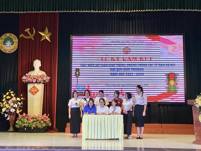 Kết thúc buổi tuyên truyền, đại diện Công đoàn và học sinh đã tham gia ký cam kết thực hiện nghiêm Luật An toàn giao thông, không sử dụng ma túy, thuốc lá điện tử, đồng thời tích cực lan tỏa thông điệp “Trường học an toàn – Học sinh thân thiện, trách nhiệm”.