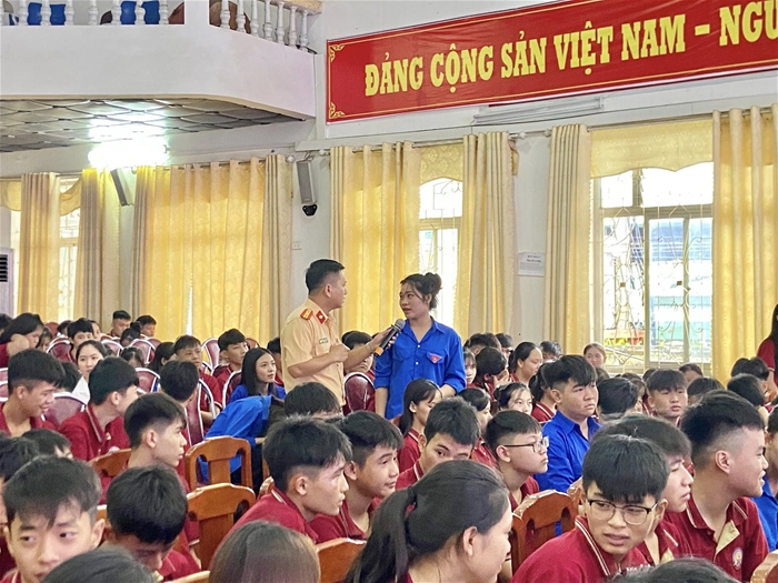 Trong buổi tuyên truyền, Thiếu tá Bùi Quang Cảnh, cán bộ Phòng Cảnh sát Giao thông đã cung cấp nhiều thông tin bổ ích, thiết thực về quy định khi tham gia giao thông, những lỗi vi phạm thường gặp ở lứa tuổi học sinh, đồng thời hướng dẫn cách đội mũ bảo hiểm đúng cách, cách sang đường an toàn và ứng xử văn minh khi tham gia giao thông.