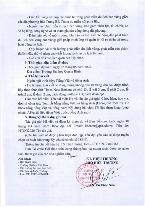 Điện thoại: 02073 892 012 - Email: dhtt@tqu.edu.vn