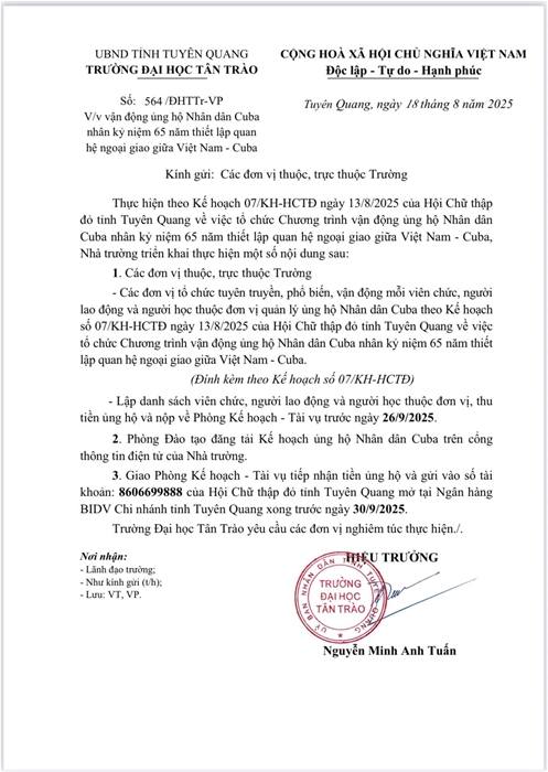 Vận động ủng hộ nhân dân Cuba – nhân kỷ niệm 65 năm thiết lập quan hệ ngoại giao Việt Nam – Cuba