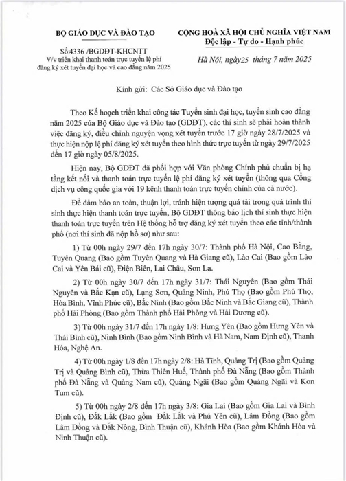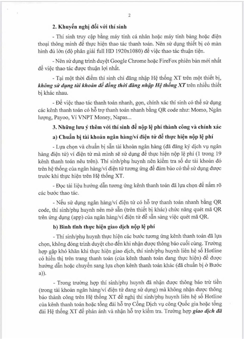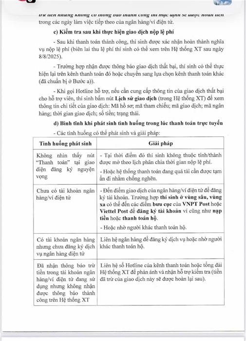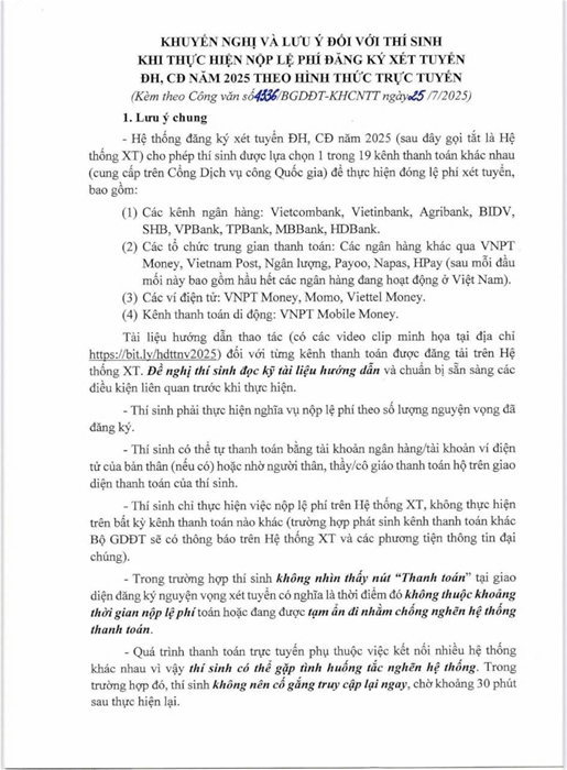 Thông báo dành cho thí sinh về việc Thanh toán trực tuyến lệ phí đăng ký xét tuyển Đại học năm 2025