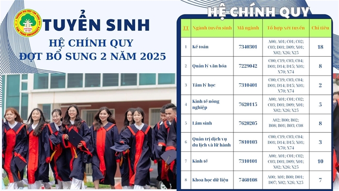 • Thông báo Tuyển sinh hệ chính quy và vừa làm vừa học đợt bổ sung 2, năm 2025 (03-10-2025)