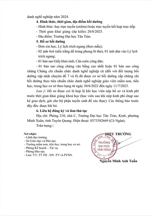 Quyết định Tiếp nhận thí sinh hoàn thành chương trình dự bị đại học vào học tại Trường Đại học Tân Trào năm 2025