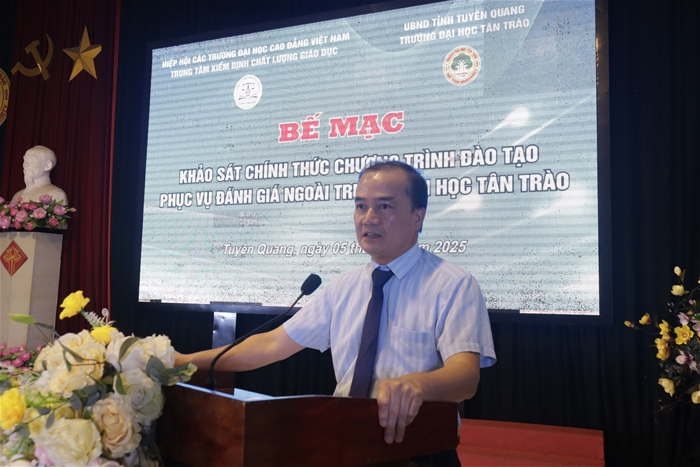 Chiều ngày 5/7/2025, Trường Đại học Tân Trào đã phối hợp với Trung tâm kiểm định chất lượng giáo dục (KĐCLGD) - Hiệp hội các trường Đại học Cao đẳng Việt Nam long trọng tổ chức Bế mạc đợt khảo sát chính thức phục vụ đánh giá ngoài 03 chương trình đào tạo tại Trường.