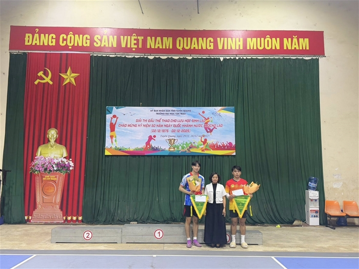 Chiều ngày 02/12, Trường Đại học Tân Trào đã tổ chức Bế mạc Giải thi đấu thể thao dành cho lưu học sinh Lào – hoạt động thiết thực hướng tới kỷ niệm 50 năm Quốc khánh nước Cộng hòa Dân chủ Nhân dân Lào (02/12/1975 – 02/12/2025).