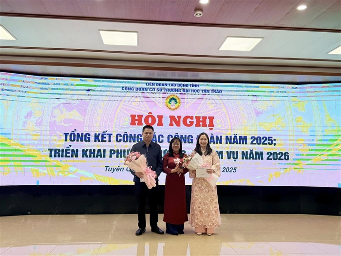 Nhân dịp này, Công đoàn cơ sở Trường Đại học Tân Trào đã tặng hoa chúc mừng các đồng chí bảo vệ thành công Luận án tiến sĩ trong năm 2025; công đoàn viên về nghỉ hưu theo chế độ trong năm 2025; khen thưởng các Công đoàn bộ phận và đoàn viên công đoàn có thành tích xuất sắc trong năm 2025, qua đó ghi nhận và động viên tinh thần trách nhiệm, sự nỗ lực, cống hiến của các tập thể và cá nhân trong các hoạt động công đoàn và phong trào thi đua.