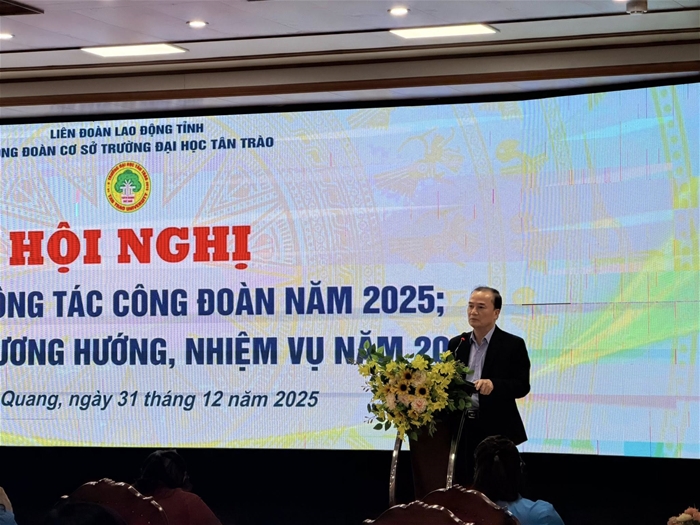 Phát biểu chỉ đạo tại hội nghị, TS. Nguyễn Minh Anh Tuấn – Hiệu trưởng Nhà trường đã ghi nhận, biểu dương những kết quả mà Công đoàn cơ sở Trường Đại học Tân Trào đạt được trong năm 2025. Đồng thời, đồng chí đề nghị Công đoàn tiếp tục tăng cường công tác chăm lo đời sống cho đoàn viên; đẩy mạnh các phong trào thi đua, hoạt động văn hóa, văn nghệ, thể dục thể thao; góp phần xây dựng môi trường làm việc đoàn kết, năng động và hiệu quả.