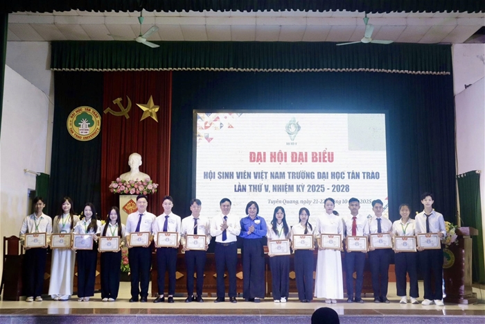 Trung ương Hội Sinh viên Việt Nam trao Bằng khen cho các tập thể và cá nhân có thành tích tiêu biểu trong công tác Hội và phong trào sinh viên nhiệm kỳ 2023 – 2025; Ban Chấp hành Hội Sinh viên Việt Nam Trường Đại học Tân Trào tặng Giấy khen cho các hội viên, sinh viên đạt thành tích xuất sắc trong công tác Hội và phong trào sinh viên nhiệm kỳ 2023 – 2025