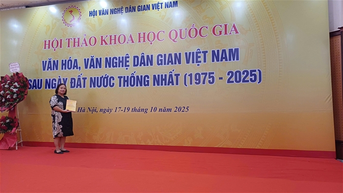 Đáng chú ý, hội thảo năm nay ghi nhận sự tham gia của sinh viên trẻ với những nghiên cứu có chiều sâu. Sinh viên Hà Ngọc Dương đã trình bày bài viết: “Từ điệu múa thần tiên đến di sản cộng đồng: “Bảo tồn và phát huy nghệ thuật Dậm Thuông của người Tày ở Mường Nặm trong thời đại mới”. Bài viết đã trần thuật được loại hình nghệ thuật múa Dậm Thuông – một hình thức biểu đạt tâm linh và cộng đồng đặc sắc của người Tày, đồng thời đề xuất hướng tiếp cận bảo tồn dưới góc nhìn di sản văn hóa phi vật thể, kết hợp với truyền thông số và hoạt động du lịch cộng đồng.