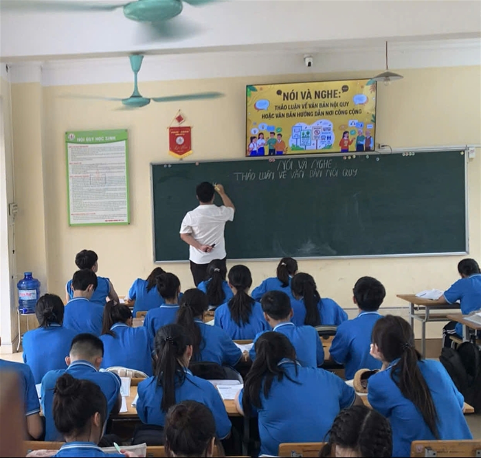 Ở phân môn Viết, Thắng hướng dẫn học sinh cách viết văn bản nội quy và văn bản hướng dẫn nơi công cộng một cách cụ thể, dễ áp dụng. Còn trong hoạt động Nói và nghe, không khí lớp học khá sôi nổi khi học sinh активно tham gia thảo luận, trao đổi ý kiến.