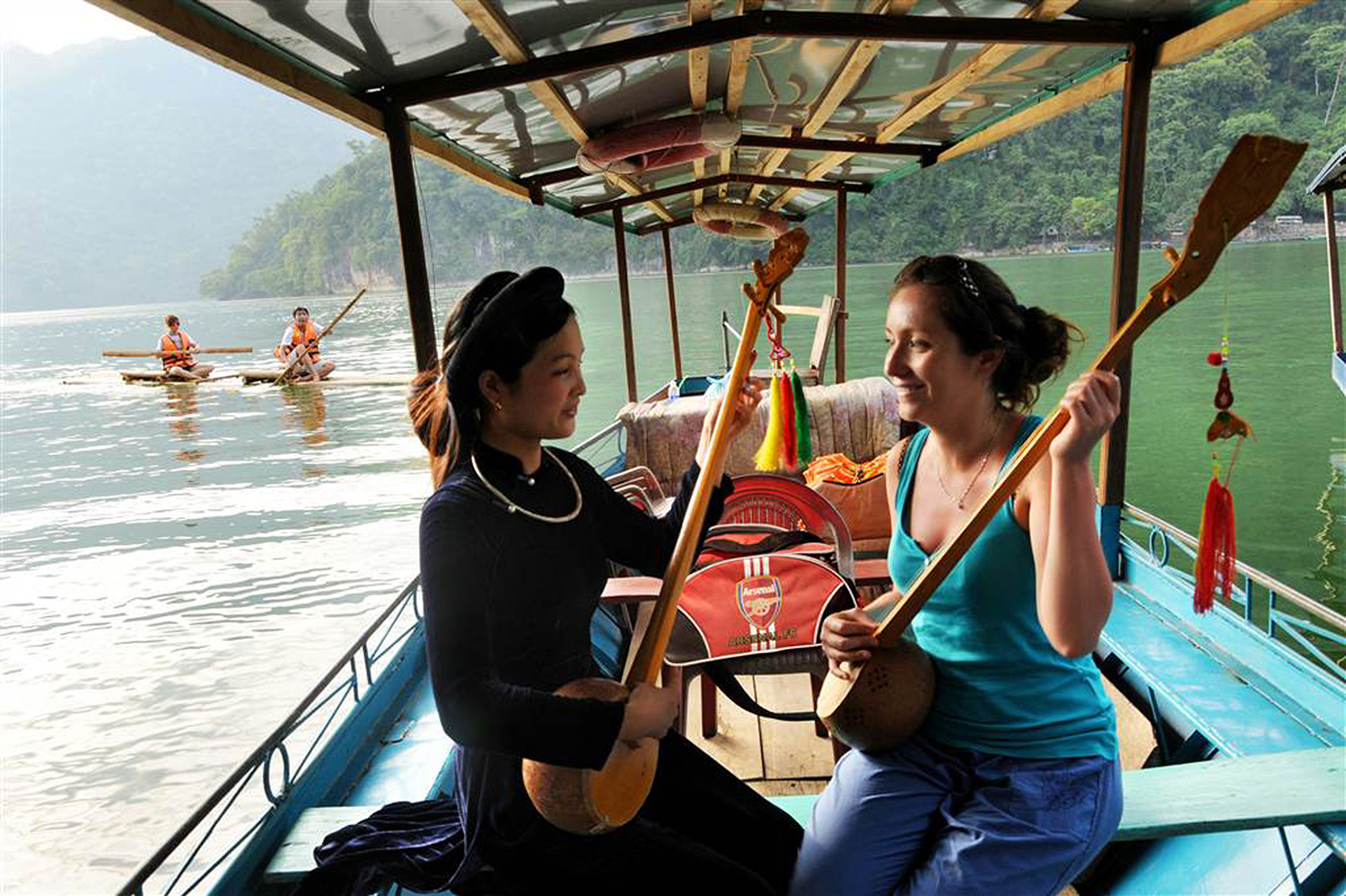 Hướng dẫn du khách chơi đàn tính trên hồ Ba Bể, tỉnh Thái Nguyên_Nguồn: nhiepanhdoisong.vn
