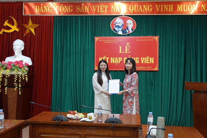 Buổi lễ diễn ra trong không khí trang nghiêm, thể hiện sự quan tâm sâu sắc của Chi bộ Khoa Sư phạm đối với công tác phát triển Đảng trong sinh viên, đồng thời là dấu mốc quan trọng ghi nhận sự nỗ lực của các sinh viên ưu tú trong hành trình rèn luyện, phấn đấu để đứng vào hàng ngũ của Đảng Cộng sản Việt Nam.