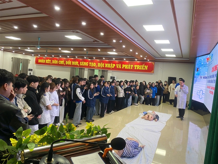 Chương trình diễn tại Hội trường 508A1, thu hút sự tham gia của đông đảo sinh viên cùng đại diện lãnh đạo nhà trường, bệnh viện và các báo cáo viên giàu kinh nghiệm trong lĩnh vực y tế.
