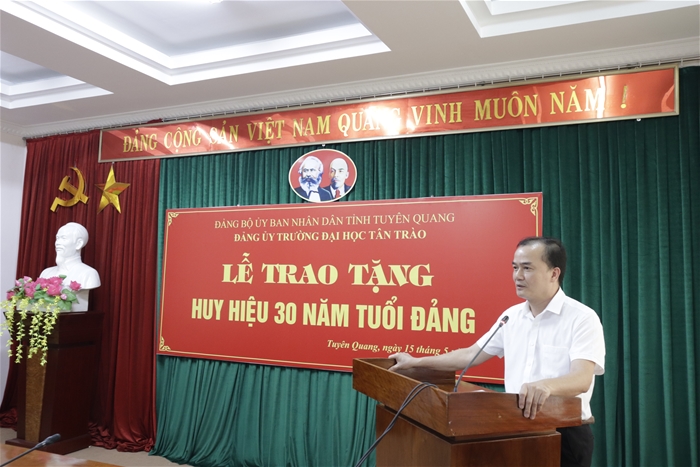 Phát biểu tại buổi lễ, Đồng chí Tiêu Thị Hương - Phó Trưởng Ban Tổ chức Đảng ủy UBND tỉnh nhiệt liệt chúc mừng Đảng bộ Trường Đại học Tân Trào và đồng chí Lê Quang Minh. Thay mặt cho Ban Tổ chức Đảng ủy UBND tỉnh, đồng chí Tiêu Thị Hương ghi nhận và biểu dương những thành tích, những cống hiến của đồng chí Lê Quang Minh trong suốt quá trình công tác. Đồng chí cũng bày tỏ mong muốn, đồng chí Lê Quang Minh sẽ tiếp tục là tấm gương sáng, đóng góp nhiều hơn nữa trong sự phát triển của Trường Đại học Tân Trào cũng như công tác xây dựng Đảng trong giai đoạn mới.