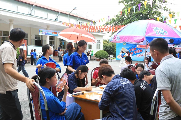 Sinh viên tình nguyện nhiệt tình hỗ trợ tân sinh viên làm thủ tục nhập học, hướng dẫn các khu vực trong trường và giải đáp thắc mắc – góp phần tạo nên một mùa tựu trường thân thiện và ấm áp