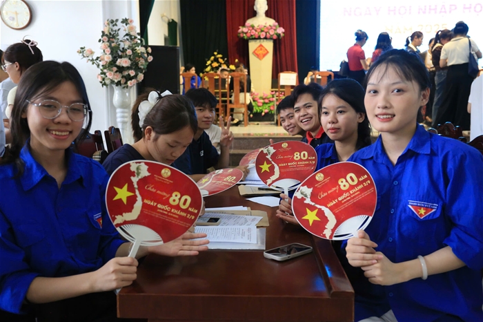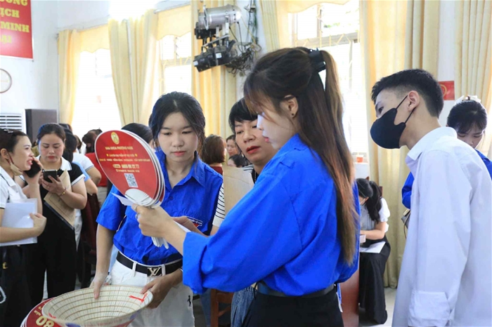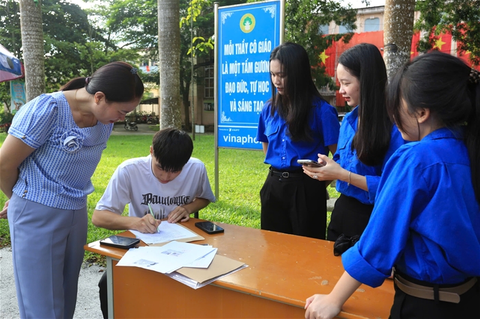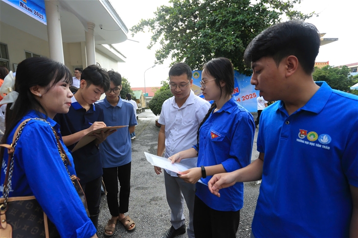 Sinh viên tình nguyện tích cực hỗ trợ tân sinh viên làm thủ tục nhập học năm 2025