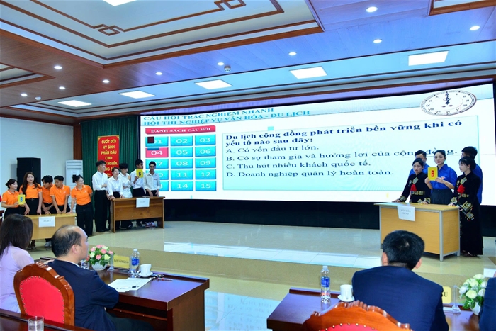 Tại chặng thi Hiểu biết nghiệp vụ Văn hóa – Du lịch, các đội thi thể hiện sự nhanh nhạy và kiến thức chuyên môn vững vàng thông qua phần trắc nghiệm nhanh với các câu hỏi về di sản, văn hóa, du lịch của Tuyên Quang, Việt Nam và thế giới, cùng phần xử lý tình huống gắn với thực tiễn nghề nghiệp.