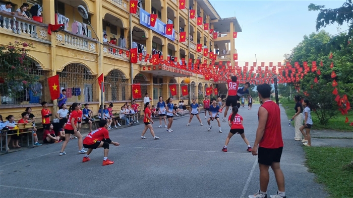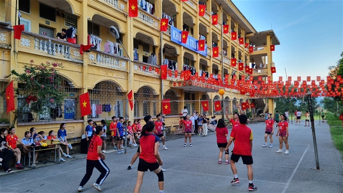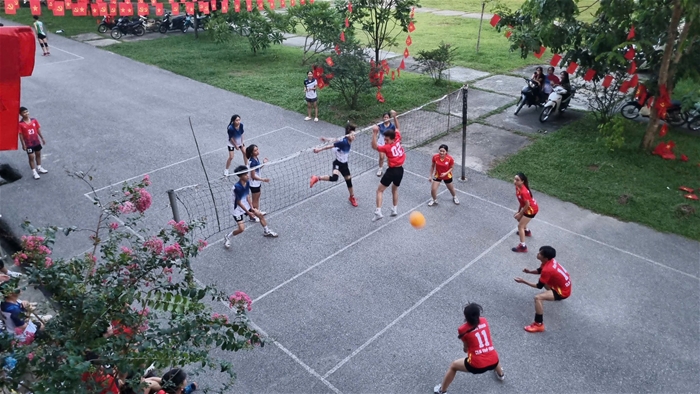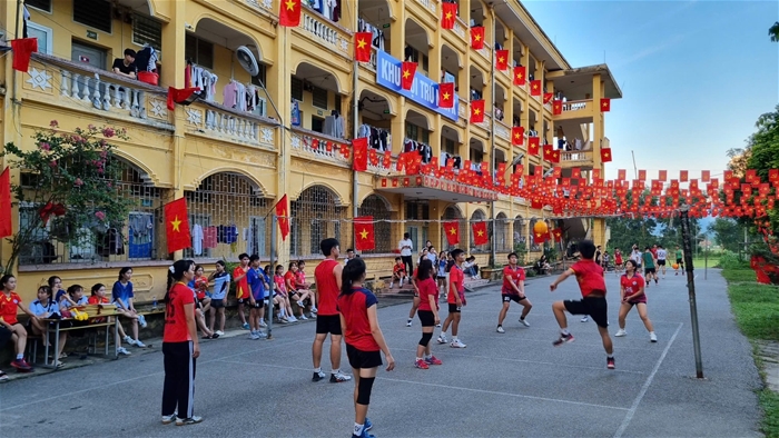 Sân ký túc xá rực rỡ sắc đỏ của cờ Tổ quốc, hòa cùng tiếng hò reo cổ vũ của khán giả, đã tạo nên một bầu không khí thể thao cuồng nhiệt, tiếp thêm sức mạnh và động lực cho các vận động viên thi đấu hết mình.