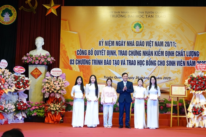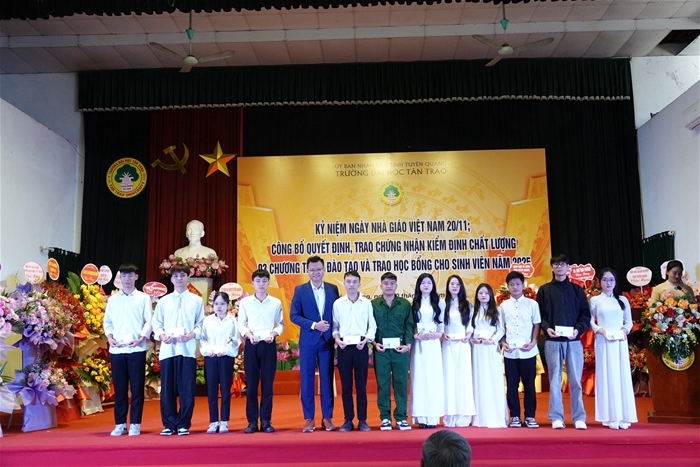 Những suất học bổng và phần quà được trao trong chương trình không chỉ là sự ghi nhận nỗ lực của sinh viên, mà còn là ngọn lửa khích lệ, giúp các em tiếp tục nuôi dưỡng ước mơ, hoài bão và không ngừng phấn đấu. Nhà trường trân trọng cảm ơn sự quan tâm, đồng hành của các cơ quan, tổ chức, doanh nghiệp đã luôn hỗ trợ, tiếp sức để sinh viên Trường Đại học Tân Trào có thêm điều kiện học tập, rèn luyện và phát triển.