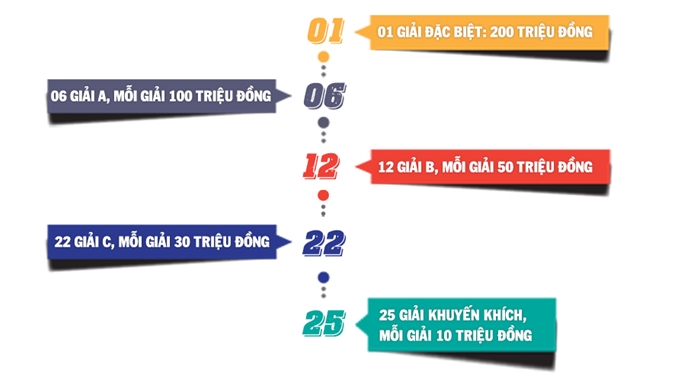 - Ngoài ra, xét tặng 02 Giải thưởng dành cho các cơ quan báo chí có các tác phẩm gây được ấn tượng tốt theo bình chọn của Hội đồng chấm Giải (nếu có); mỗi giải trị giá 20 triệu đồng.