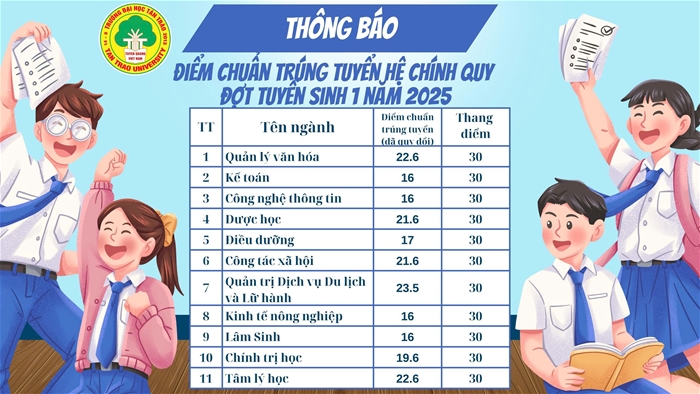 Thông báo Điểm chuẩn trúng tuyển hệ chính quy đợt tuyển sinh 1, năm 2025