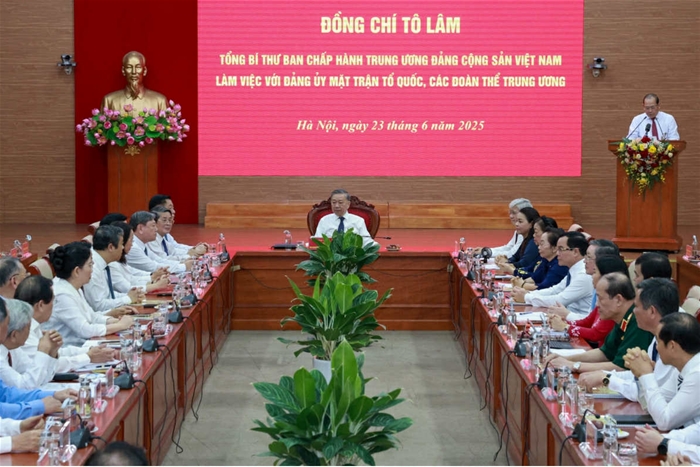Tổng Bí thư Tô Lâm và đoàn công tác Trung ương sáng nay làm việc với Đảng ủy Mặt trận Tổ quốc (MTTQ), các đoàn thể Trung ương.