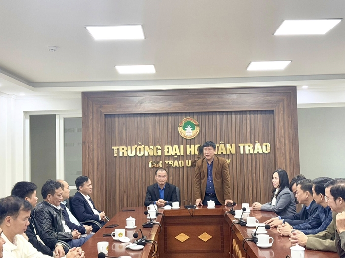 Phát biểu tại buổi làm việc, TS Nguyễn Minh Anh Tuấn - Hiệu trưởng Trường Đại học Tân Trào bày tỏ niềm vui mừng và trân trọng chào đón đoàn công tác của Trường Đại học Quảng Bình đến thăm và làm việc tại trường. TS. Nguyễn Minh Anh Tuấn đã thông tin khái quát về quá trình phát triển của Trường Đại học Tân Trào, đồng thời nêu một số kết quả, thành tích nổi bật mà nhà trường đạt được trong thời gian qua, đặc biệt trong công tác đào tạo, nghiên cứu khoa học và phát triển đội ngũ giảng viên. Hiệu trưởng Trường Đại học Tân Trào bày tỏ mong muốn hai đơn vị tiếp tục tăng cường hợp tác, nhất là trong việc nâng cao trình độ học hàm, học vị cho đội ngũ giảng viên, phối hợp tổ chức các hoạt động học thuật, hội thảo khoa học và đào tạo sau đại học.