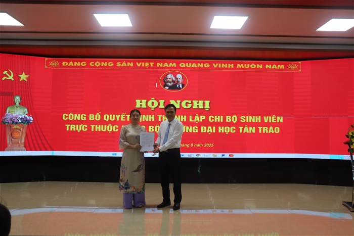 Chiều ngày 13/8/2025, tại phòng họp 508 nhà A1, Đảng ủy Trường Đại học Tân Trào đã long trọng tổ chức Hội nghị công bố Quyết định thành lập Chi bộ Sinh viên trực thuộc Đảng bộ Trường.