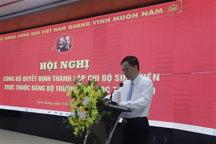 Phát biểu tại Hội nghị, đồng chí Phạm Duy Hưng – Bí thư Đảng ủy, Phó Hiệu trưởng nhấn mạnh: Việc thành lập Chi bộ Sinh viên có ý nghĩa quan trọng, góp phần tăng cường công tác giáo dục chính trị tư tưởng, rèn luyện đạo đức, lối sống, nâng cao ý thức trách nhiệm của đảng viên sinh viên; đồng thời tạo môi trường để sinh viên phấn đấu, trưởng thành và đóng góp tích cực vào sự phát triển chung của Nhà trường. Đồng chí Bí thư Đảng uỷ nhấn mạnh 5 nhiệm vụ trọng tâm của Chi bộ Sinh viên gồm: Giữ vững nguyên tắc, nền nếp sinh hoạt Đảng; Phát huy vai trò tiên phong gương mẫu của đảng viên sinh viên trong học tập và các phong trào; Tăng cường công tác giáo dục chính trị, tư tưởng; Chăm lo công tác phát triển đảng viên mới; Gắn hoạt động chi bộ với nhiệm vụ học tập, nghiên cứu khoa học và hoạt động Đoàn – Hội.