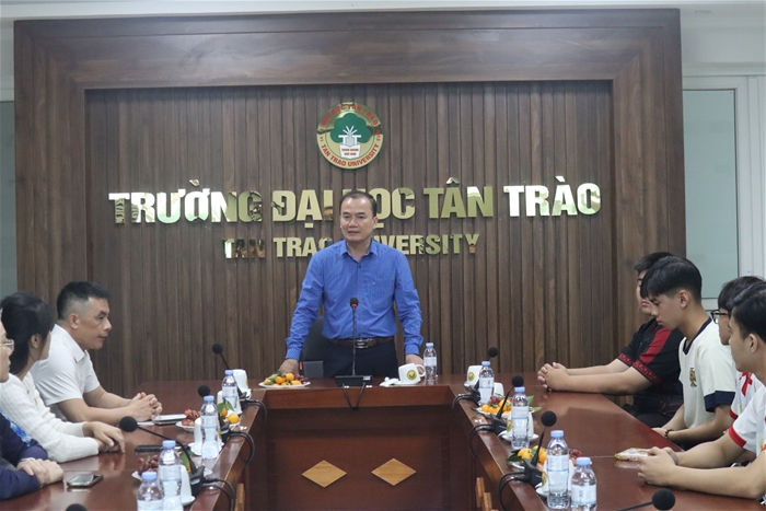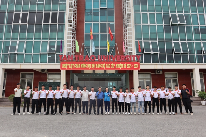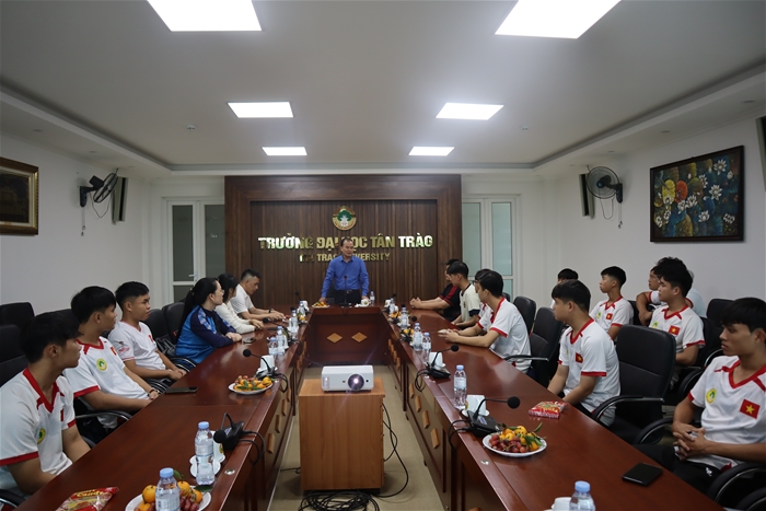 Phát biểu tại buổi gặp mặt, TS. Nguyễn Minh Anh Tuấn - Hiệu trưởng, với những tình cảm ấm áp nhất đã gửi lời chúc mừng, động viên tới các cầu thủ và nhấn mạnh rằng tinh thần đoàn kết, kỷ luật và sự tự tin chính là sức mạnh lớn của đội bóng. Thầy cũng căn dặn các vận động viên giữ gìn sức khỏe, thi đấu tập trung – bình tĩnh, cống hiến những trận đấu đẹp mắt và nỗ lực hết mình vì màu cờ sắc áo của Nhà trường.