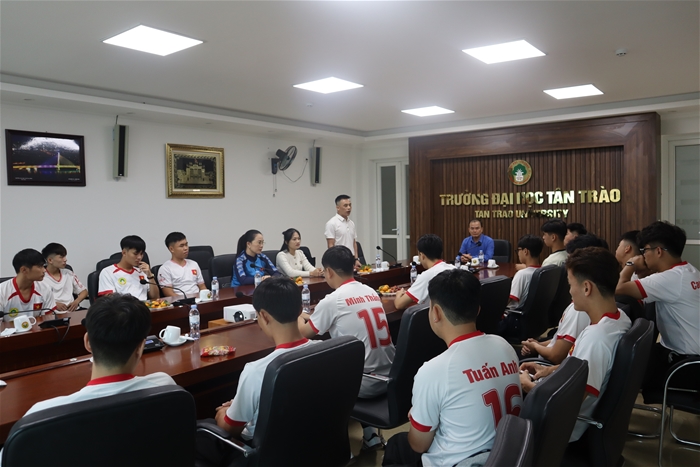 Tham dự buổi gặp mặt có TS. Nguyễn Minh Anh Tuấn – Hiệu trưởng Nhà trường cùng các giảng viên hướng dẫn và toàn thể thành viên đội tuyển bóng đá nam sinh viên TQU.