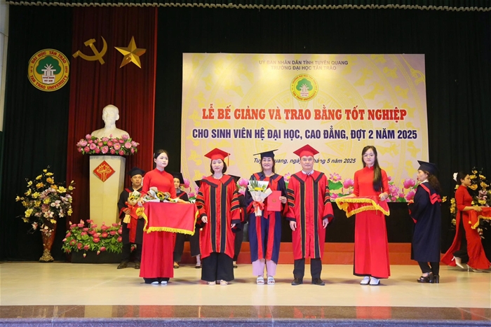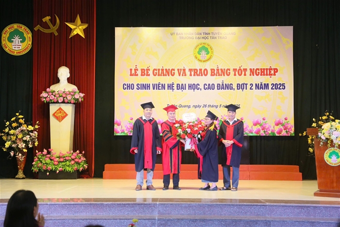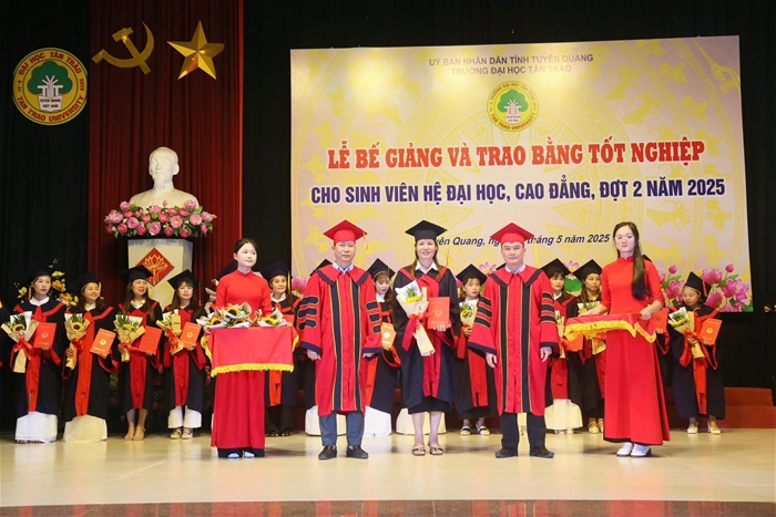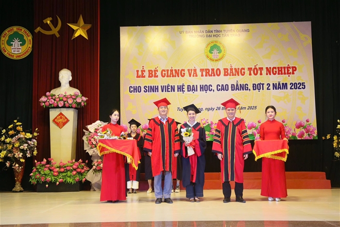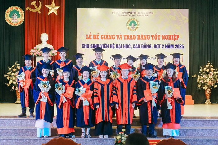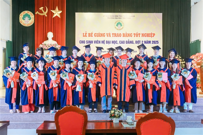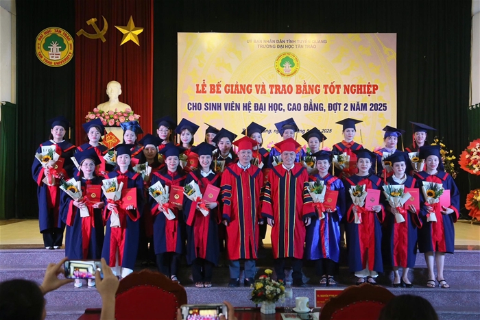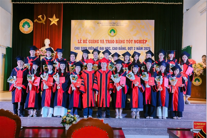 Trong đợt này, Trường Đại học Tân Trào trao bằng tốt nghiệp cho 461 sinh viên các ngành đào tạo hệ vừa làm vừa học tốt nghiệp năm 2025. Nhiều sinh viên đã đạt thành tích xuất sắc trong học tập và tích cực tham gia các hoạt động phong trào, góp phần nâng cao hình ảnh, uy tín của Nhà trường.