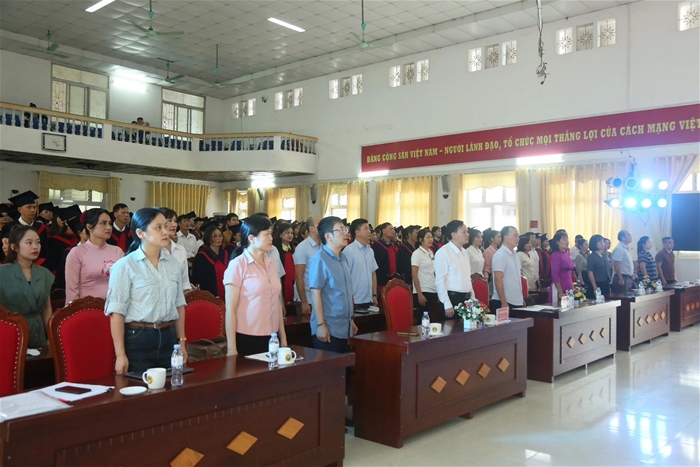 Tham dự buổi lễ có Ban Giám hiệu Nhà trường; đại diện lãnh đạo các khoa, phòng, ban chức năng cùng đông đảo giảng viên, sinh viên và người thân của các tân cử nhân hệ liên thông vừa làm, vừa học tốt nghiệp năm 2025.
