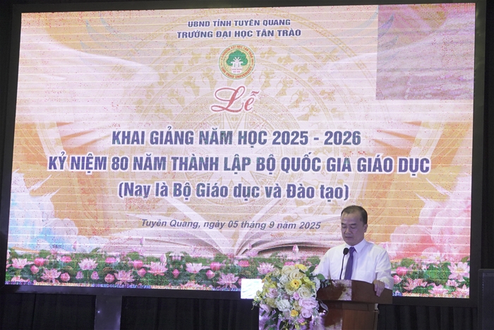 Phát biểu tại Lễ khai giảng năm học mới, TS. Nguyễn Minh Anh Tuấn, Hiệu trưởng đã bày tỏ sự vui mừng, hân hoan và ghi nhận những thành tích toàn trường đã đạt được trong năm học 2024-2025. Trong năm học mới 2025-2026, Tiến sĩ nhấn mạnh Nhà trường xác định chủ đề năm học là: Chất lượng - Hội nhập - Phát triển. Trước những cơ hội mới và thách thức, năm học 2025-2026 Trường Đại học Tân Trào tập trung thực hiện các nhiệm vụ trọng tâm sau: