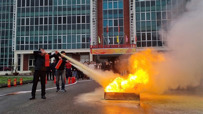 Đặc biệt, chương trình đã tổ chức diễn tập thực hành phương án chữa cháy và cứu nạn, cứu hộ theo tình huống giả định. Thông qua hoạt động thực hành, cán bộ, giảng viên và sinh viên được trực tiếp trải nghiệm, rèn luyện kỹ năng xử lý tình huống thực tế, nâng cao tinh thần chủ động, bình tĩnh ứng phó khi xảy ra các tình huống khẩn cấp.