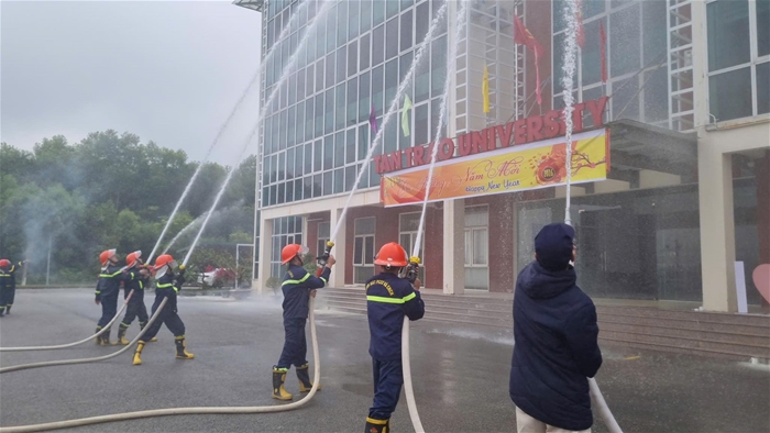 Tham dự chương trình có TS. Nguyễn Minh Anh Tuấn – Hiệu trưởng Trường Đại học Tân Trào; đại diện lãnh đạo các đơn vị trực thuộc; lực lượng phụ trách công tác PCCC của Nhà trường cùng đông đảo viên chức, người lao động và sinh viên.