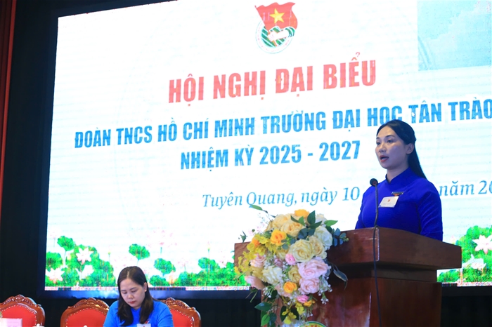 Tiếp đó, Hội nghị đã nghe đồng chí Ngô Thanh Huyền – Phó Bí thư Đoàn trường trình bày Báo cáo kiểm điểm của Ban Chấp hành Đoàn trường nhiệm kỳ 2022–2024, giai đoạn 2024–2025, chỉ rõ những ưu điểm, hạn chế và đề ra giải pháp khắc phục trong nhiệm kỳ tới.