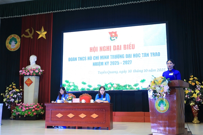 Hội nghị Đại biểu Đoàn TNCS Hồ Chí Minh Trường Đại học Tân Trào, nhiệm kỳ 2025–2027 đã thành công tốt đẹp, mở ra chặng đường mới cho công tác Đoàn và phong trào thanh niên Nhà trường – nơi hội tụ trí tuệ, nhiệt huyết và khát vọng cống hiến của tuổi trẻ Tân Trào.