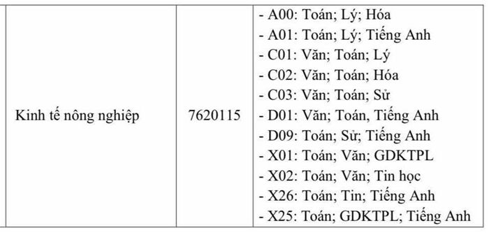 Dự kiến các tổ hợp xét tuyển ngành Kinh tế nông nghiệp, Trường Đại học Tân Trào năm 2025