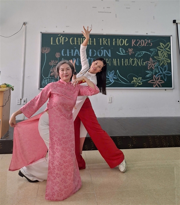 ưới sự hướng dẫn của NSƯT Thanh Hương trong khoảng thời gian rất ngắn, sinh viên lớp ĐH Chính trị K2025 đã tập múa trên nền nhạc ca khúc “Việt Nam - Tự hào tiếp bước tương lai”.