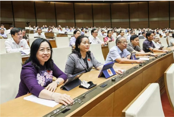 Đại biểu Quốc hội ấn nút biểu quyết thông qua Nghị quyết về việc sắp xếp đơn vị hành chính cấp tỉnh năm 2025