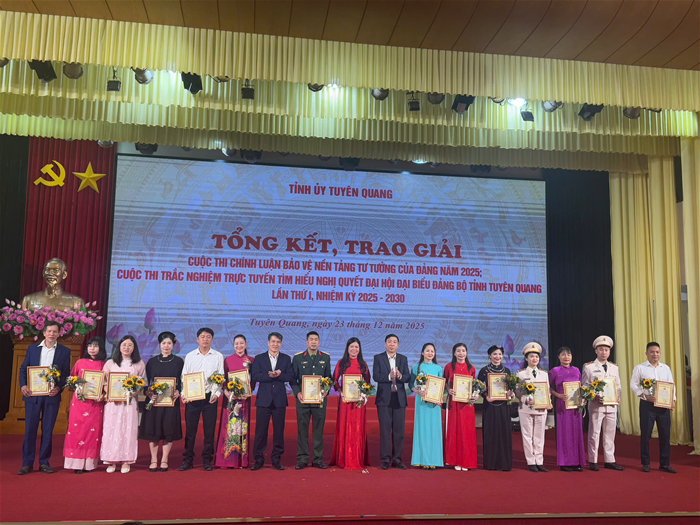 Chiều ngày 23/12/2025, tại Lễ tổng kết và trao giải Cuộc thi chính luận bảo vệ nền tảng tư tưởng của Đảng năm 2025 do Tỉnh ủy Tuyên Quang tổ chức, Trường Đại học Tân Trào vinh dự được trao Giải Tập thể xuất sắc.