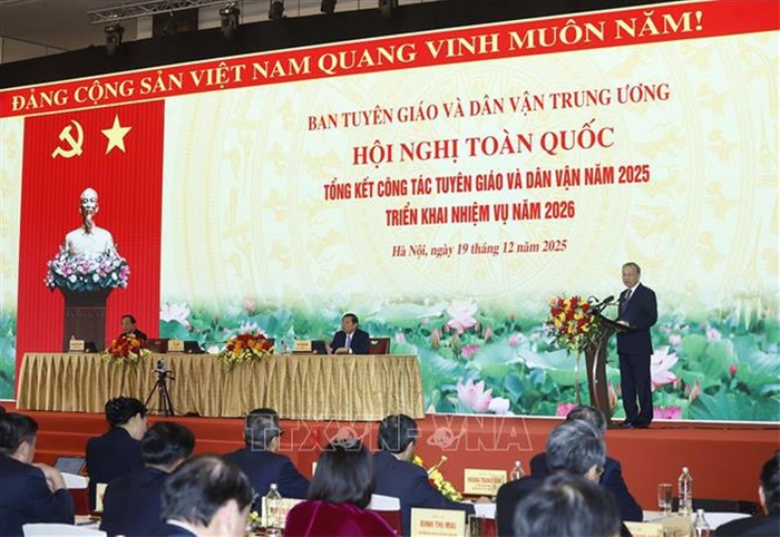 Sáng 19/12, Tổng Bí thư Tô Lâm dự và phát biểu chỉ đạo tại Hội nghị toàn quốc tổng kết công tác Tuyên giáo và Dân vận của Đảng năm 2025, triển khai nhiệm vụ năm 2026. Cổng Thông tin điện tử Chính phủ trân trọng giới thiệu toàn văn bài phát biểu của đồng chí Tổng Bí thư.