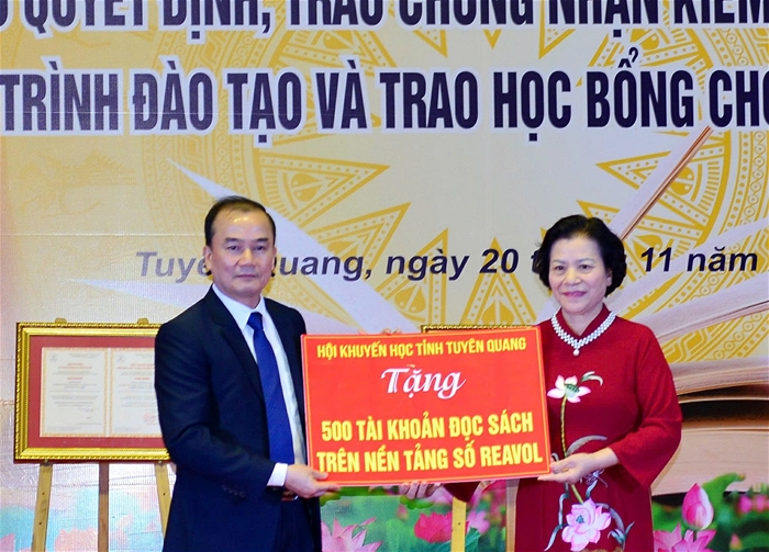 Chương trình vinh dự được đón tiếp: Đ/c Đại tá Nguyễn Thành An, Phó Chính ủy Bộ Chỉ huy Quân sự tỉnh Tuyên Quang; Đ/c Vũ Thị Bích Việt, Ủy viên BCH Hội Khuyến học Việt Nam, Chủ tịch Hội Khuyến học tỉnh Tuyên Quang, nguyên Ủy viên BCH Đảng bộ tỉnh, nguyên Phó Chủ tịch UBND tỉnh; Lãnh đạo các sở, ban, ngành, cơ quan, đơn vị trong tỉnh.