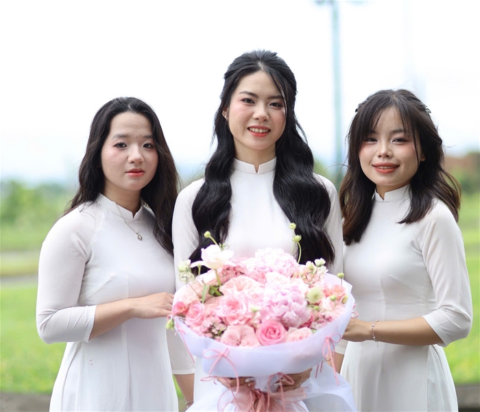 Phượng và các bạn rạng rỡ trong ngày chụp kỷ yếu chuẩn bị cho Lễ tốt nghiệp
